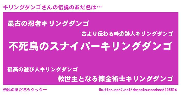 | 意味不明あだ名 | 『自称キリングダンゴ』 |