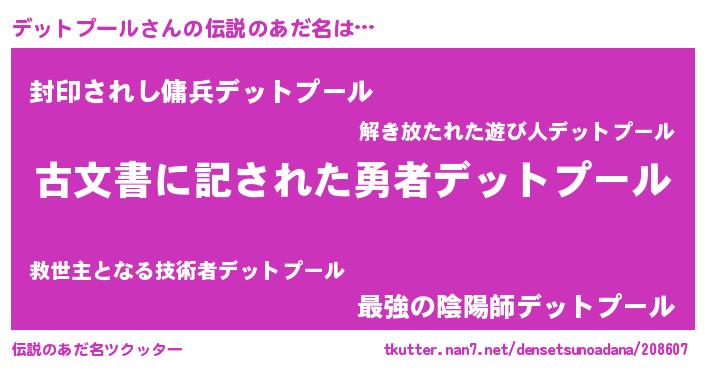| 意味不明あだ名 | 『永久保存デットプール』 |