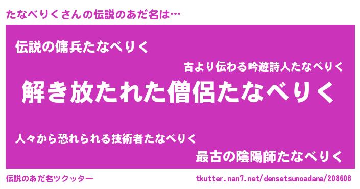 | ヒーロー風カッコイイあだ名 | 『魔戒騎士タナ』『究極戦士タナベリク』 |
