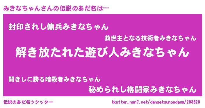 | ヒーロー風カッコイイあだ名 | 『幻影騎士ミキ』『究極戦士ミキナチャン』 |