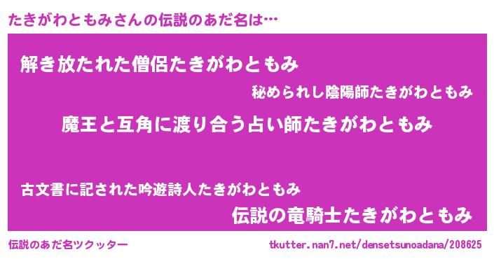 | ヒーロー風カッコイイあだ名 | 『愛の使者たきがわともみ』 |