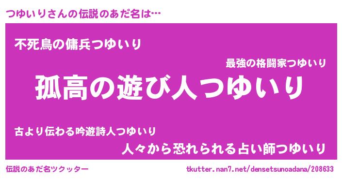 | 意味不明あだ名 | 『めかぶ科つゆいり属』『自称つゆいり』 |