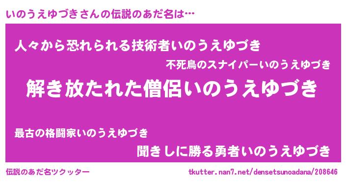 | ポケモン風あだ名 | 『イノゴンZ』『ヒイノウエユヅキ』 |