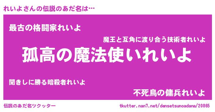 | 胡散臭い通販商品みたいなあだ名 | 『信頼と実績のサプリメント…その名も「れいよ」』 |
