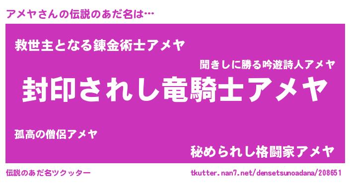 | 男性向けラノベタイトル風あだ名 | 『アメヤアートオンライン』 |