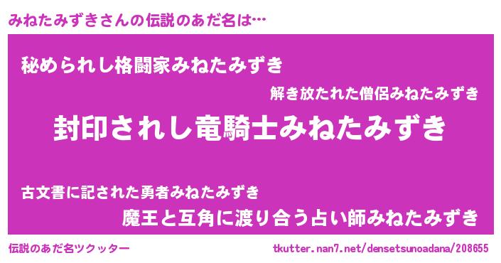 | 自動車の名前っぽいあだ名 | 『ミネティマ』『ミクア』『フィッミ』 |