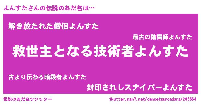 | ヒーロー風カッコイイあだ名 | 『天空の使者よんすた』『幻影騎士ヨン』 |