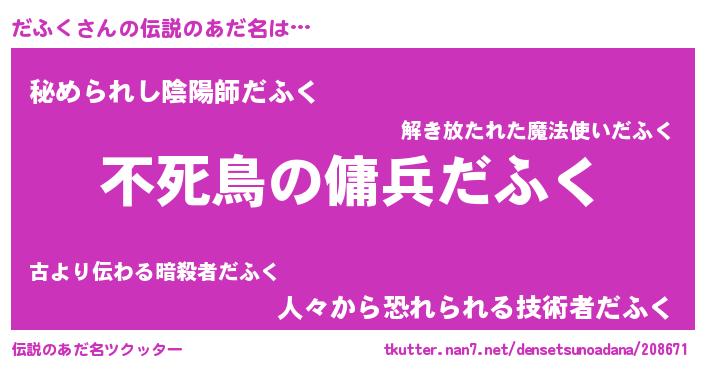 | ファンタジー風あだ名 | 『ダフフェル』『エターナルダフクー』 |