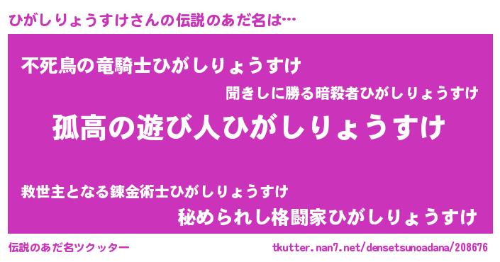 | 意味不明あだ名 | 『自称ひがしりょうすけ』 |