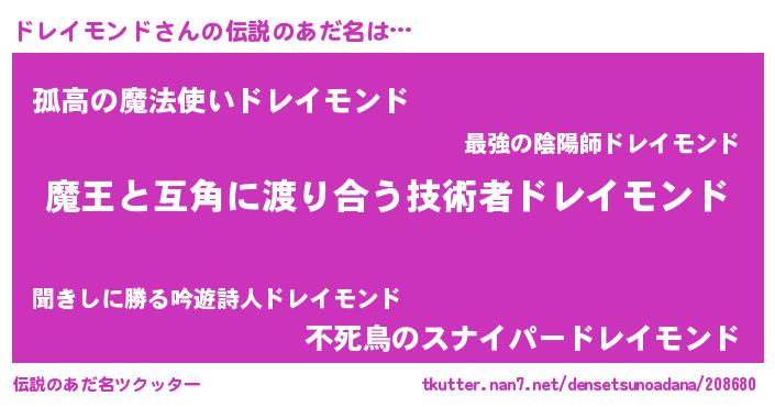 | 男性向けラノベタイトル風あだ名 | 『転生したらドレイモンドだった件』 |