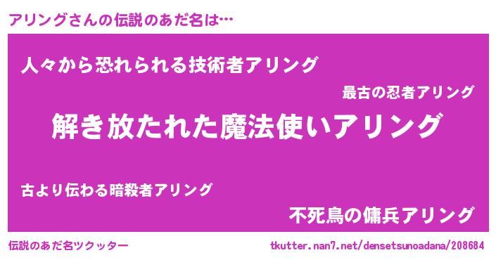 | ファンタジー風あだ名 | 『ゼアリトゥ』『ファントムアリス』 |