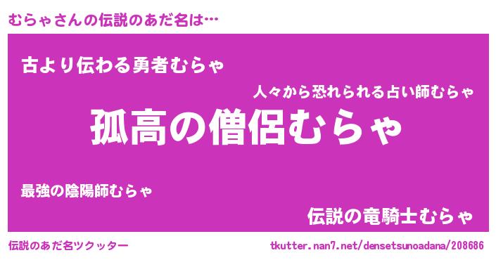 | 男性向けラノベタイトル風あだ名 | 『ムラャスレイヤー』『魔弾の王とむらゃ』 |