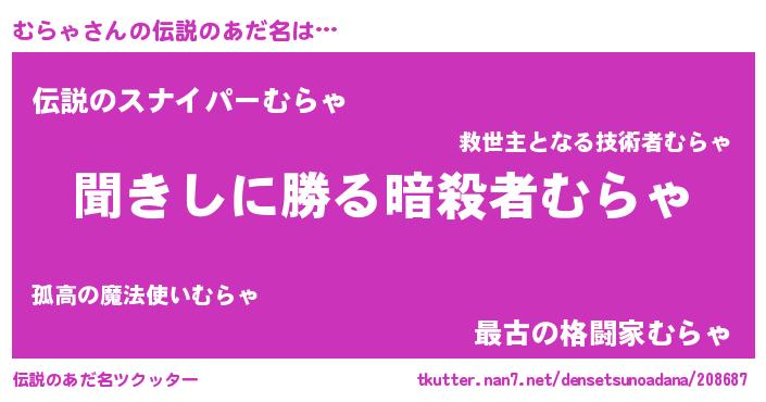 | 胡散臭い通販商品みたいなあだ名 | 『絶対に幸福をもたらす健康食品…その名も「むらゃ」』 |