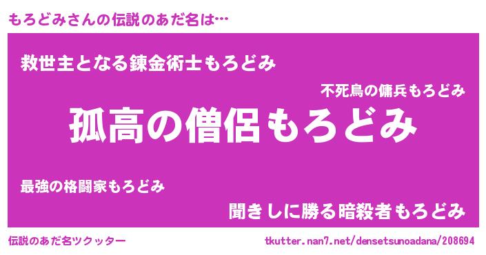 | ヒーロー風カッコイイあだ名 | 『暗黒騎士モロ』『慈愛の使者もろどみ』 |