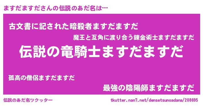 | 胡散臭い通販商品みたいなあだ名 | 『必ず成功するブレスレット…その名も「ますだますだ」』 |