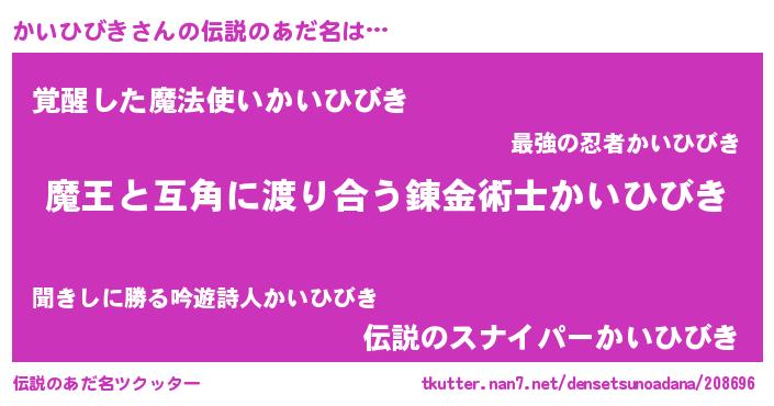 | 女子向けラノベタイトル風あだ名 | 『かいひびき恋絵巻』 |