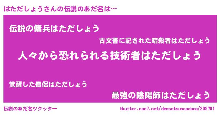 | 意味不明あだ名 | 『住所不定無職はただしょう(12歳)』 |