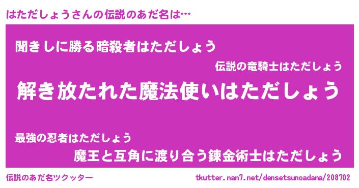 | 意味不明あだ名 | 『とにかく怪しいはただしょう』 |