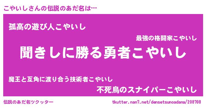 | 意味不明あだ名 | 『自称こやいし』『永久保存こやいし』 |