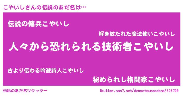 | ヘコむあだ名 | 『こやにー』『なまこ酢』『こやお』 |