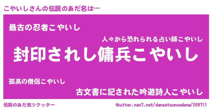 | ファンタジー風あだ名 | 『コヤフェル』『カークコヤラー』 |