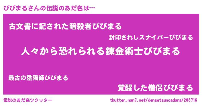 | ヒーロー風カッコイイあだ名 | 『超時空戦士ビビマル』『ネオビビマル』 |