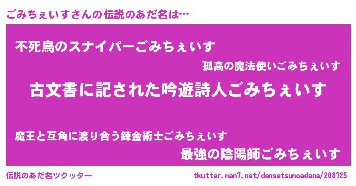 | 意味不明あだ名 | 『永久保存ごみちぇいす』 |