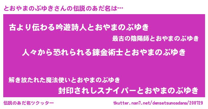 | 胡散臭い通販商品みたいなあだ名 | 『100人中100人が認めた隕石のかけら…その名も「とおやまのぶゆき」』 |