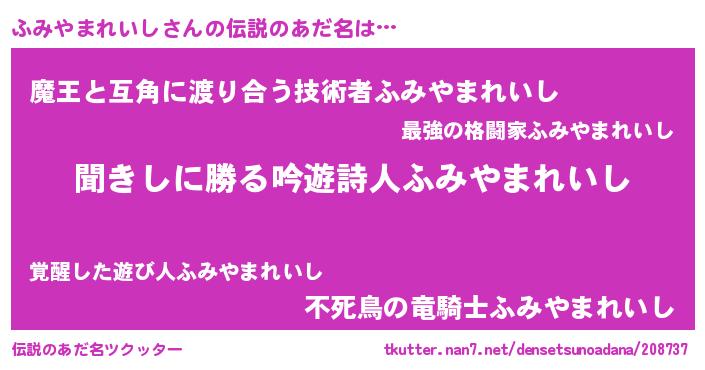 | 肩書あだ名 | 『ふみやまれいし閣下』 |