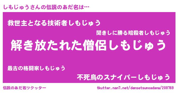| 意味不明あだ名 | 『とにかく怪しいしもじゅう』 |