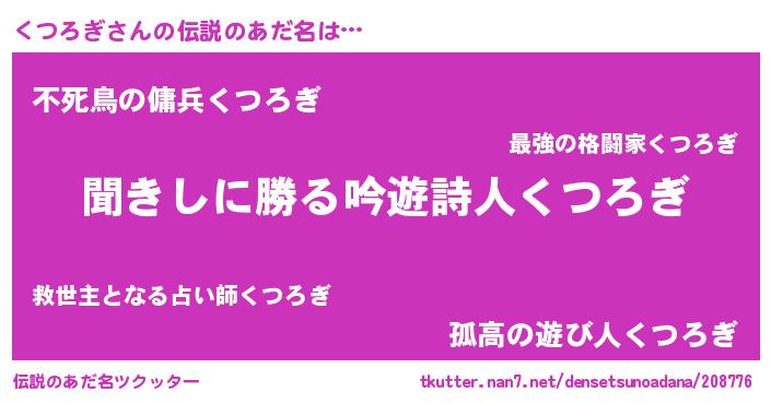 | ヒーロー風カッコイイあだ名 | 『ネオクツロギ』『スーパークツロギ』 |