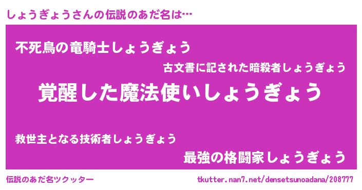 | 意味不明あだ名 | 『とにかく怪しいしょうぎょう』 |