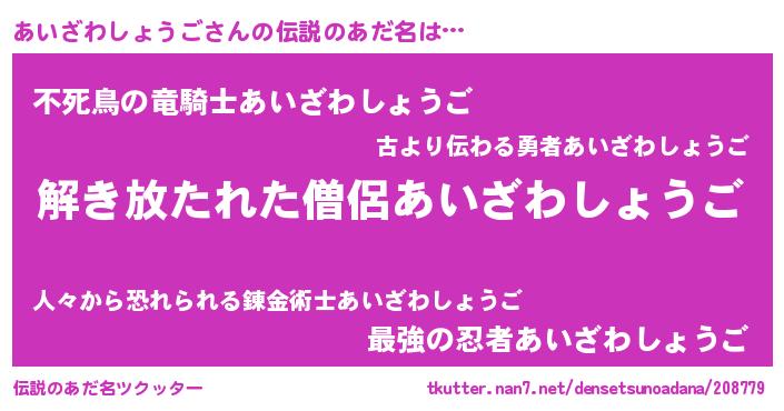 | 意味不明あだ名 | 『とにかく怪しいあいざわしょうご』 |