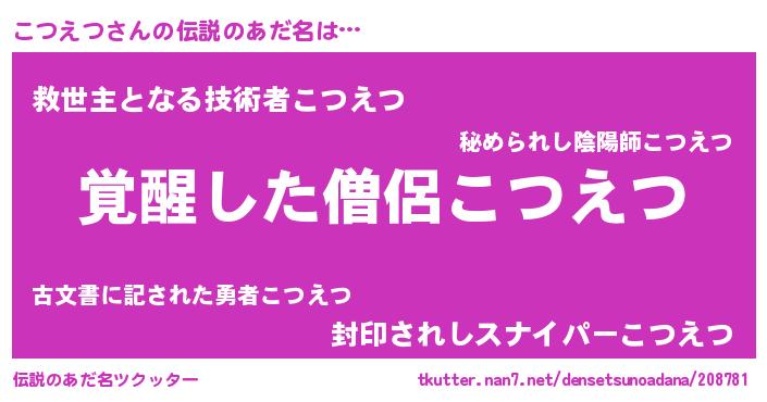 | 意味不明あだ名 | 『とにかく怪しいこつえつ』 |