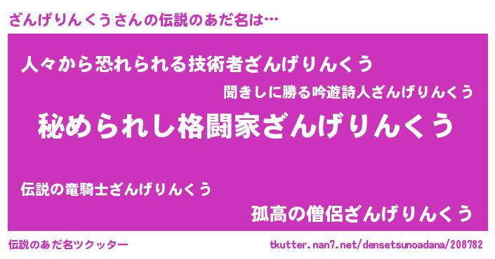| 意味不明あだ名 | 『ざんげりんくうフォーエバー』 |