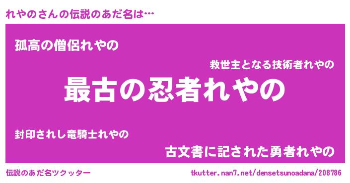 | 意味不明あだ名 | 『もやし科れやの属』『自称れやの』 |