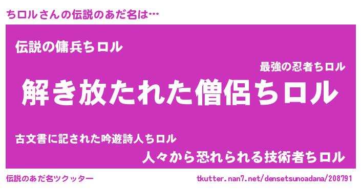 | 意味不明あだ名 | 『とにかく怪しいちロル』 |