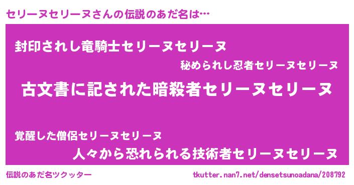 | 意味不明あだ名 | 『永久保存セリーヌセリーヌ』 |