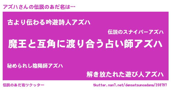 | ヒーロー風カッコイイあだ名 | 『愛の使者アズハ』『ネオアズハ』 |