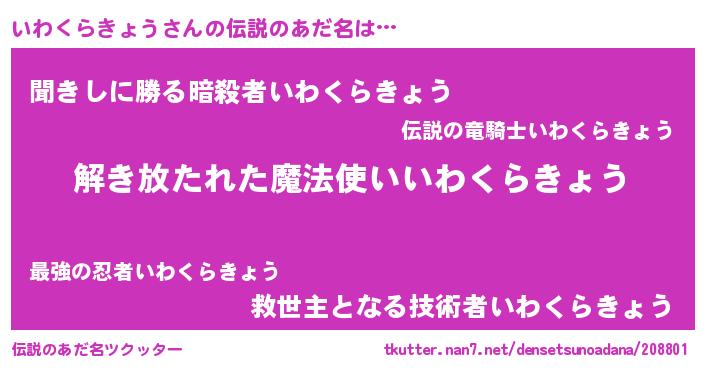 | 意味不明あだ名 | 『自称いわくらきょう』 |