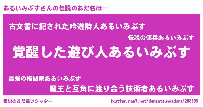 | ヘコむあだ名 | 『あるっちょ』『あるいみぶす(震え声)』 |