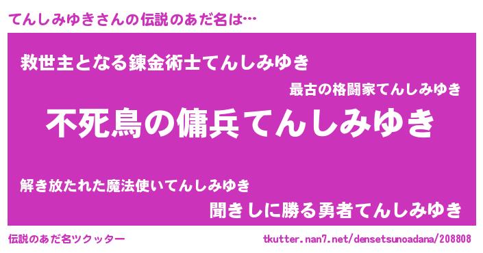 | ヒーロー風カッコイイあだ名 | 『スーパーテンシミユキ』『魔戒騎士テン』 |