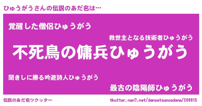 | 男性向けラノベタイトル風あだ名 | 『転生したらひゅうがうだった件』 |