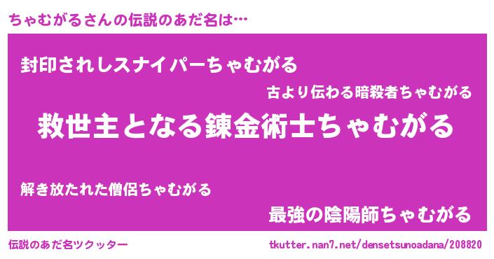 | ヒーロー風カッコイイあだ名 | 『天空の使者ちゃむがる』『仮面チャダー』 |