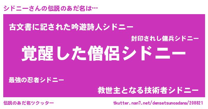 | ヒーロー風カッコイイあだ名 | 『最強戦士シドニー』『炎刃騎士シド』 |