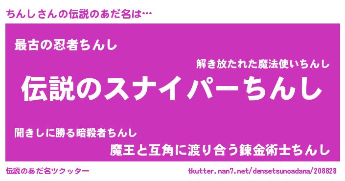 | 意味不明あだ名 | 『住所不定無職ちんし(79歳)』 |