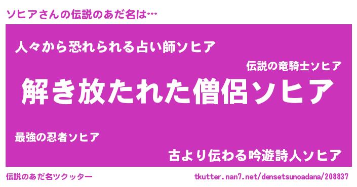 | 意味不明あだ名 | 『とにかく怪しいソヒア』 |
