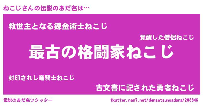 | ヒーロー風カッコイイあだ名 | 『ウルトラねこじマン』『最強戦士ネコジ』 |
