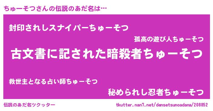 | ヒーロー風カッコイイあだ名 | 『ネオチューソツ』『スーパーチューソツ』 |