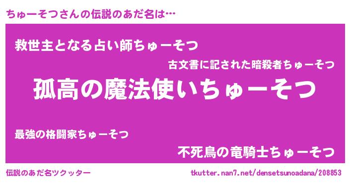 | 女子向けラノベタイトル風あだ名 | 『ちゅーそつは平凡を望む』 |